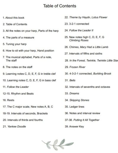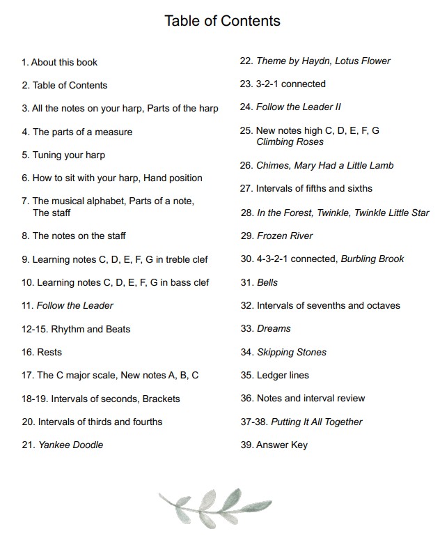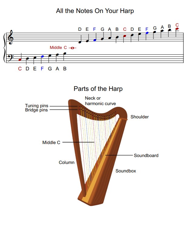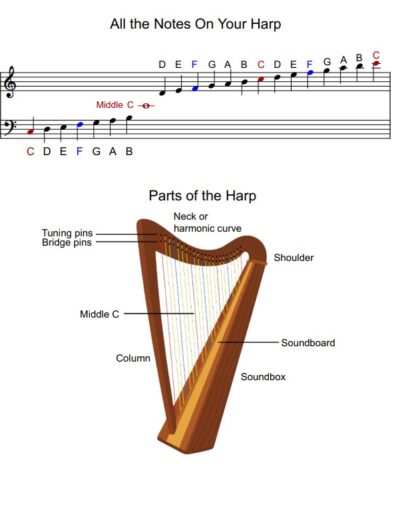 This easy to follow beginner book is written just for 22 string harps strung from C to C. It’s user-friendly and will introduce notes, rhythm, and intervals. Each lesson is followed by a song. It’s a wonderful introduction to your harp! 39 pages of music. Can be saved on a tablet for easy reading. If printing, print in color and put pages in a booklet form with odd pages on the left.